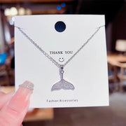 Mermaid Pendant Whale Tail Clavicle Chain Necklace Trendy Silver Color Stainless Steel Chain Lucky Animal Fishtail Necklace
